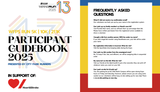 The parking lot at the CMU North Campus will be open during Expo hours on Friday and Saturday. However, we expect a lot of traffic on Saturday around the Shake-Out Run (9:30 AM) and Teeny Trot (11:30 AM), so consider parking on adjacent streets. Also, please use caution as our volunteers will be setting up for race day.